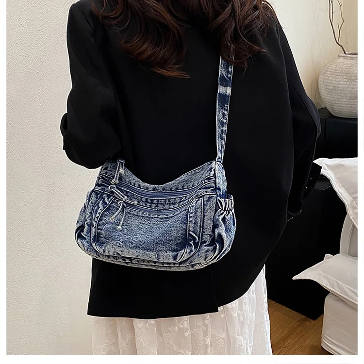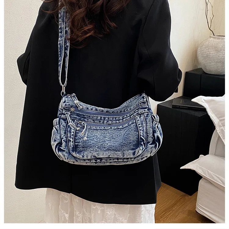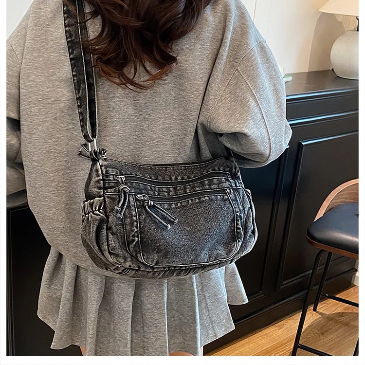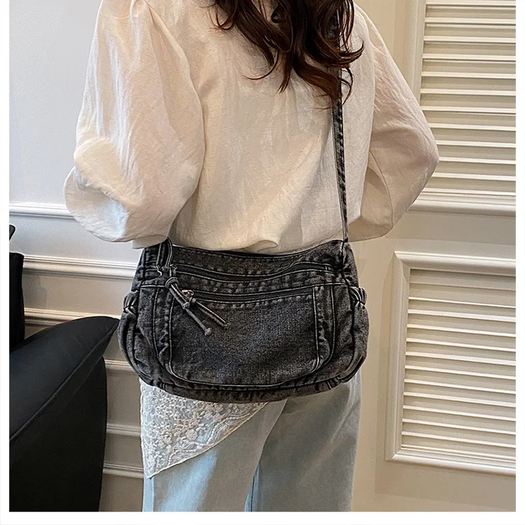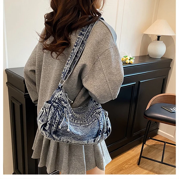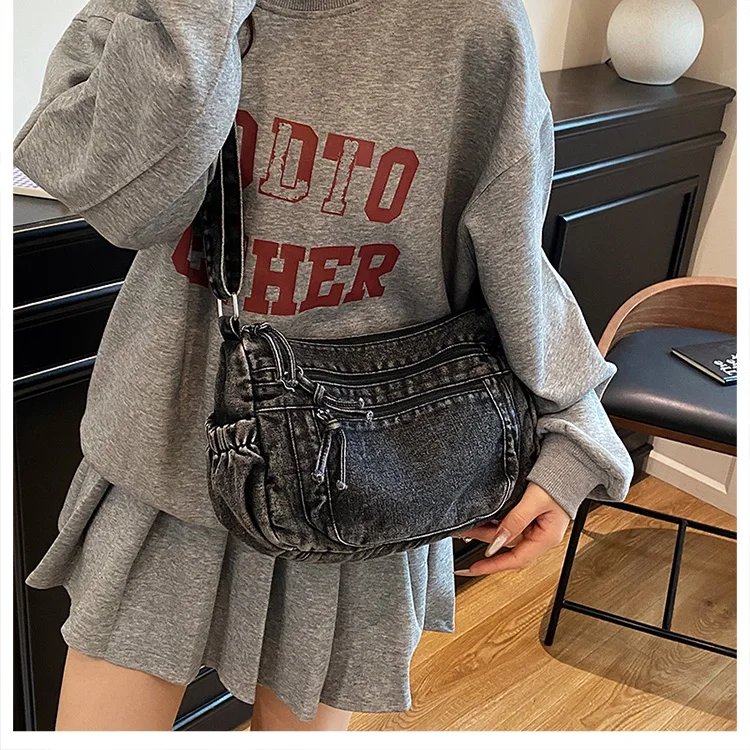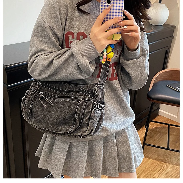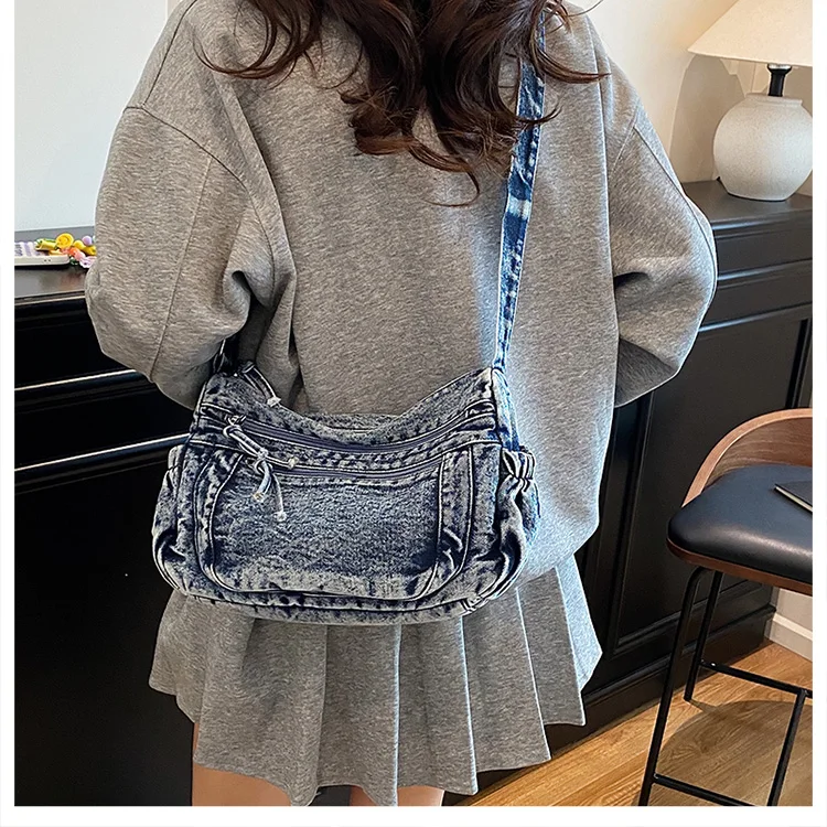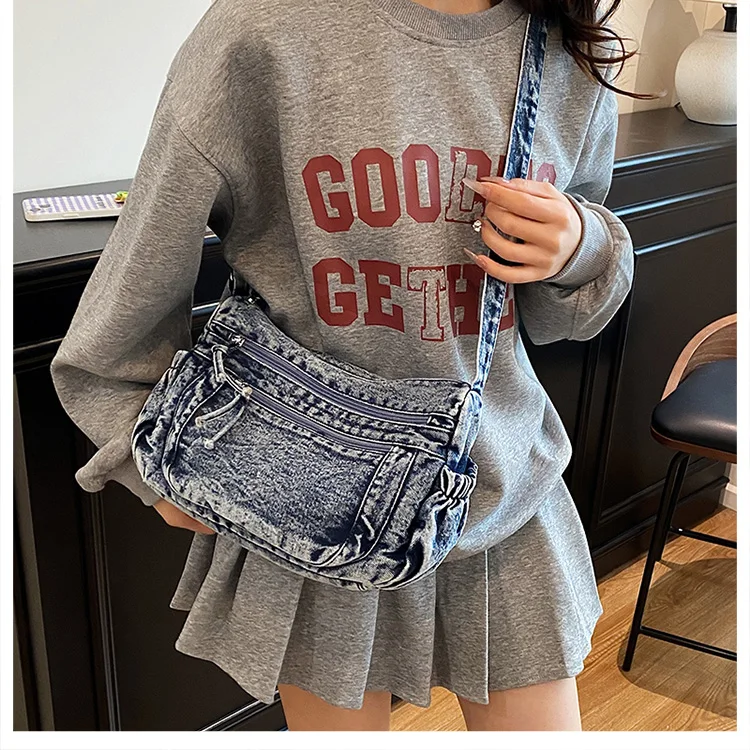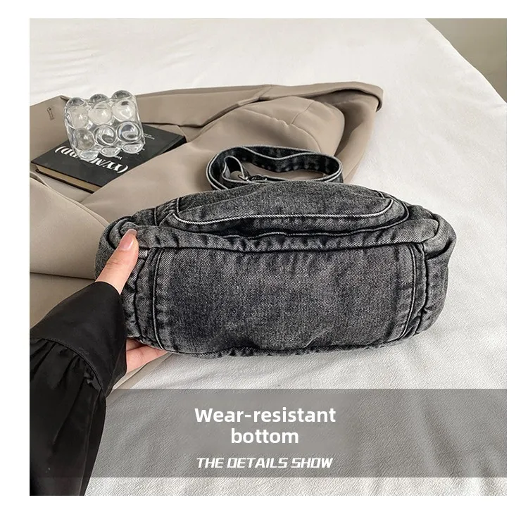 This denim shoulder bag exudes a casual yet stylish Korean vibe, perfect for everyday wear.