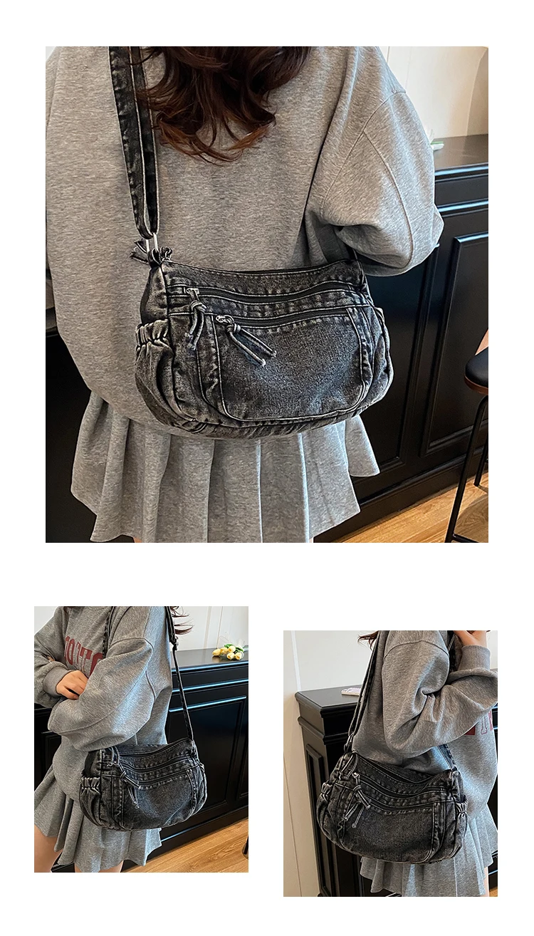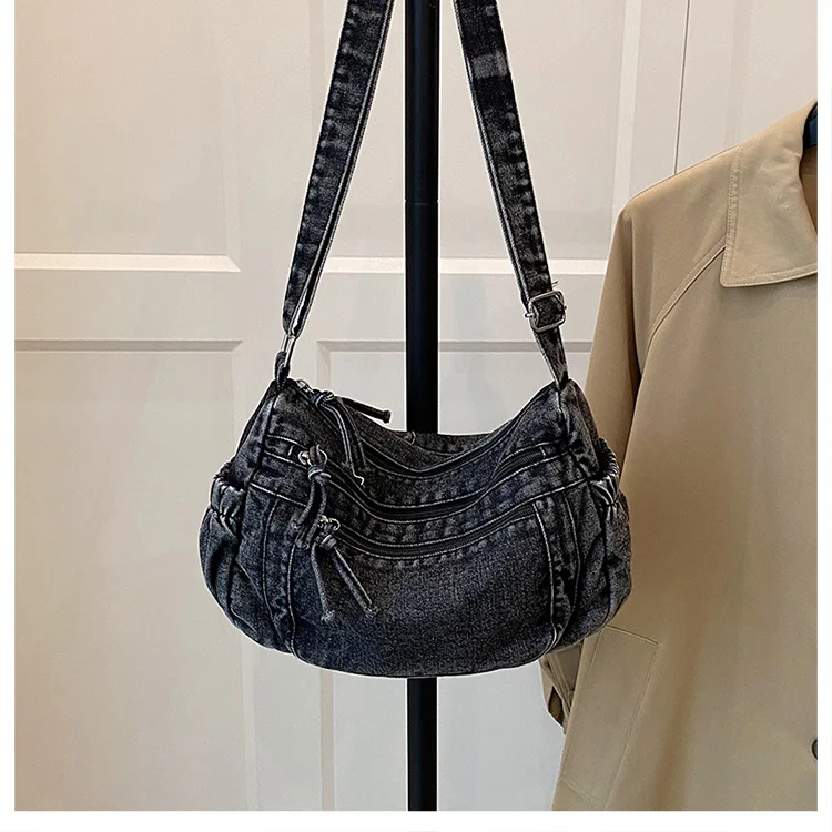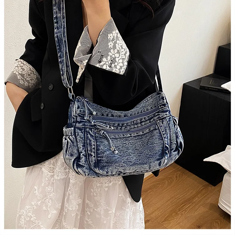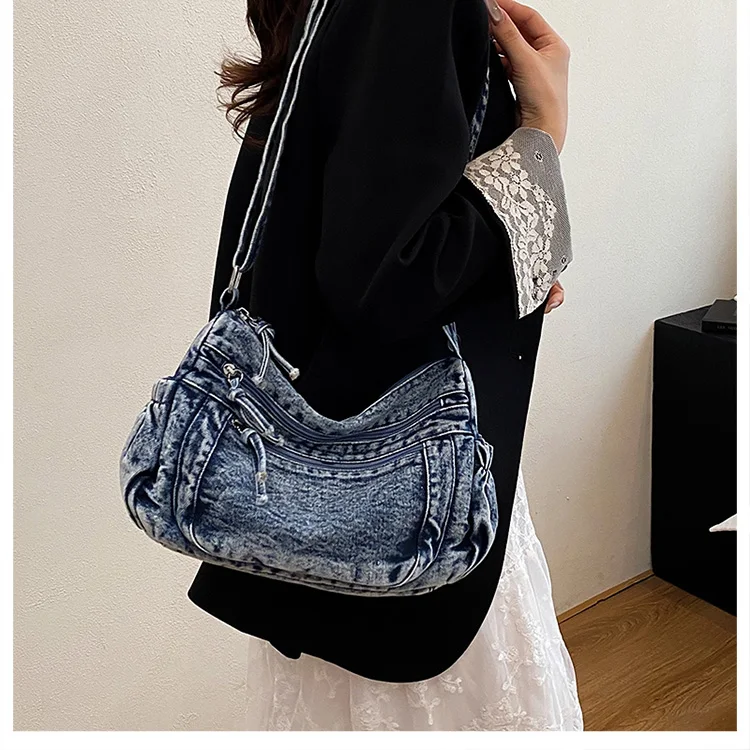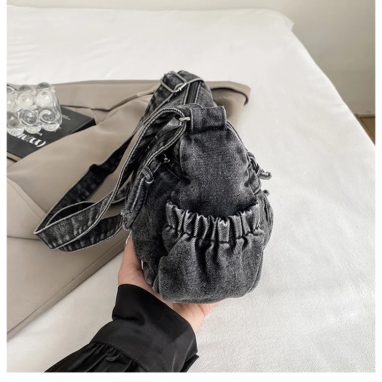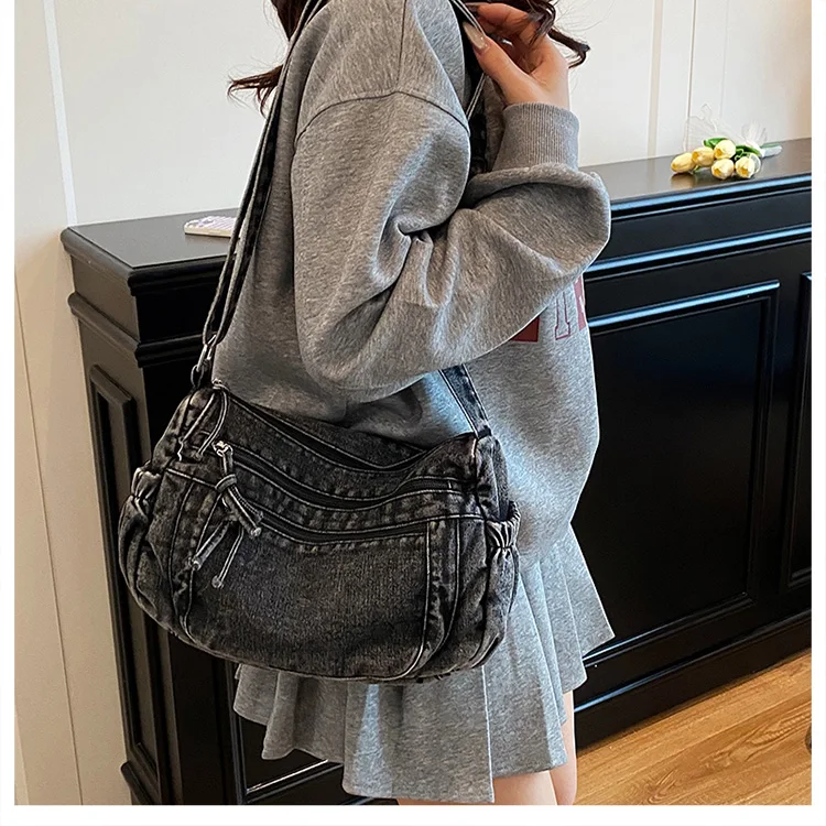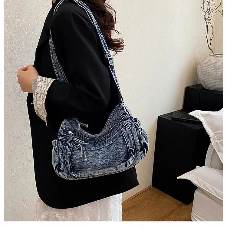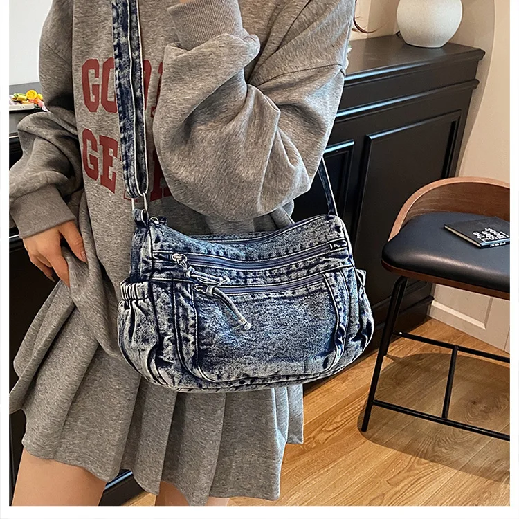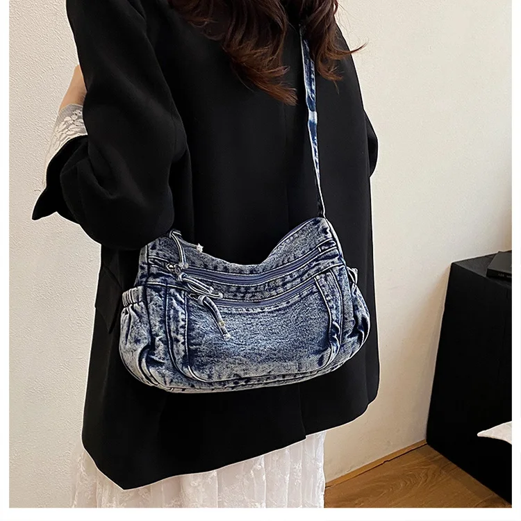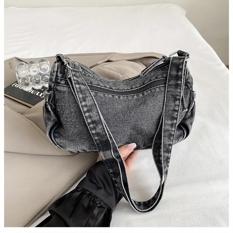 This denim shoulder bag exudes a casual yet stylish Korean vibe, perfect for everyday wear.