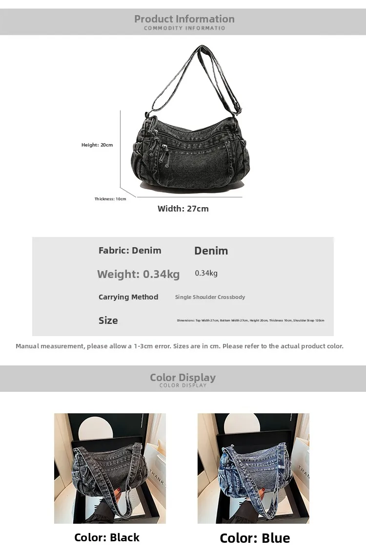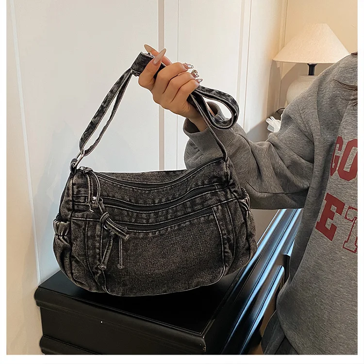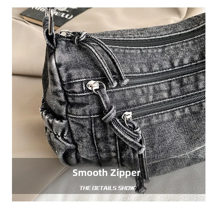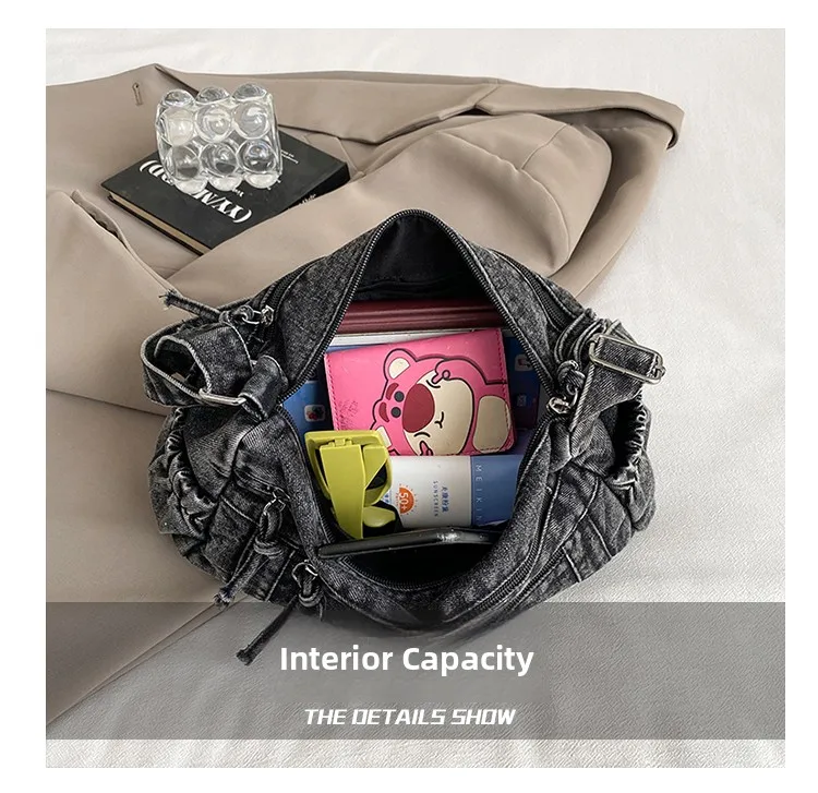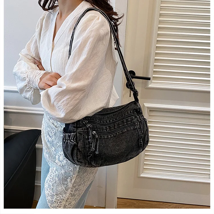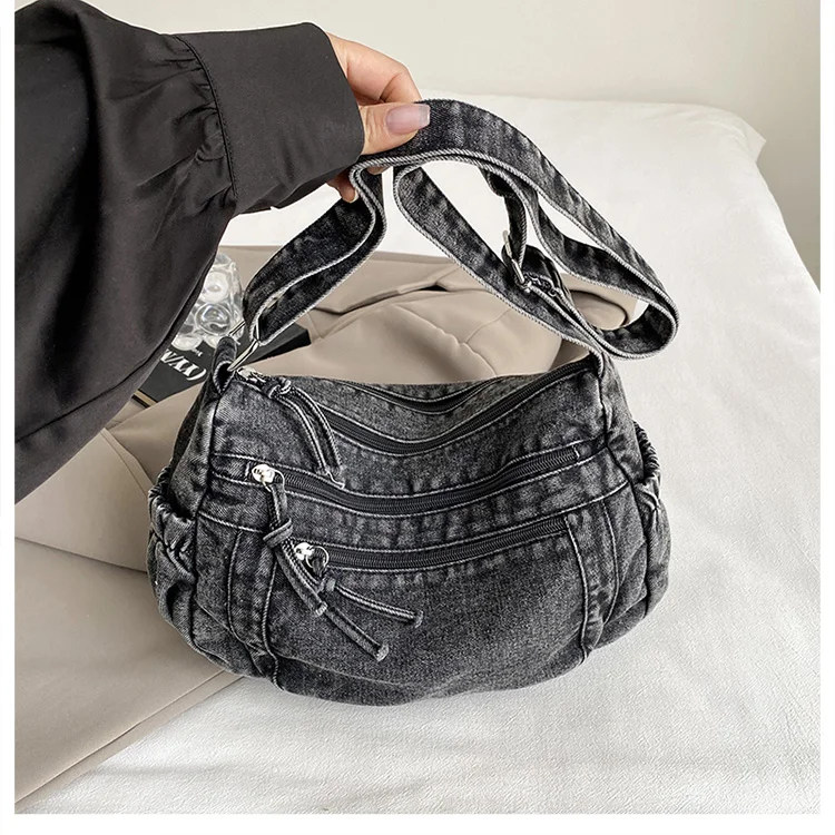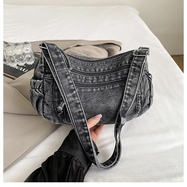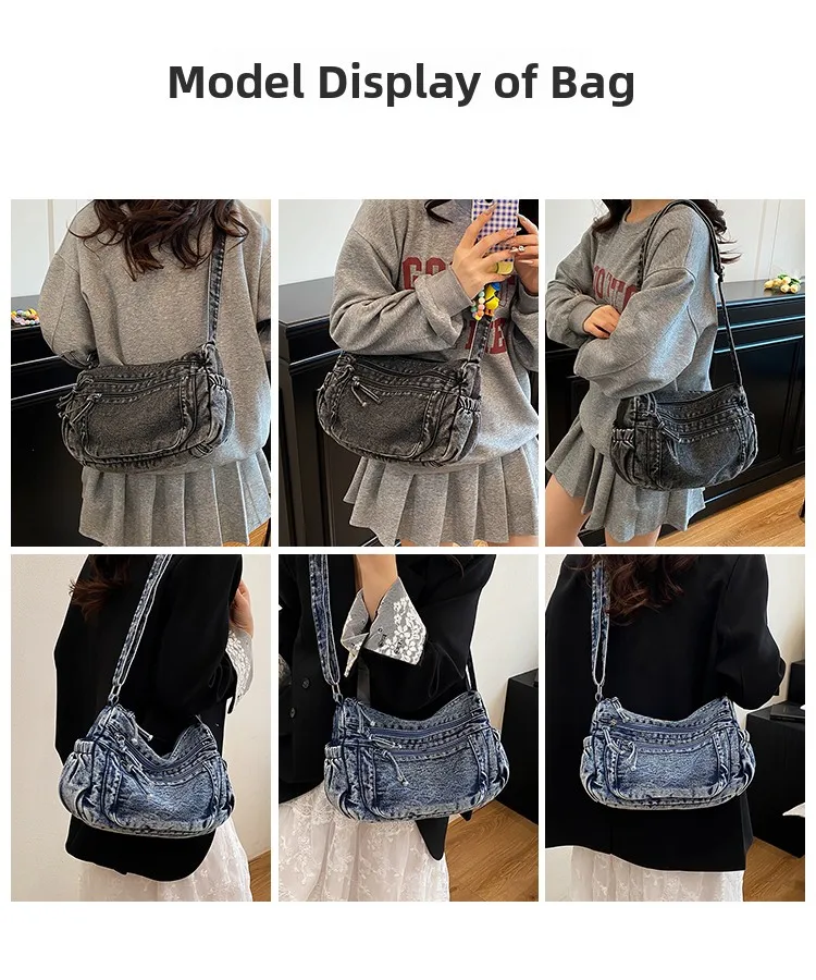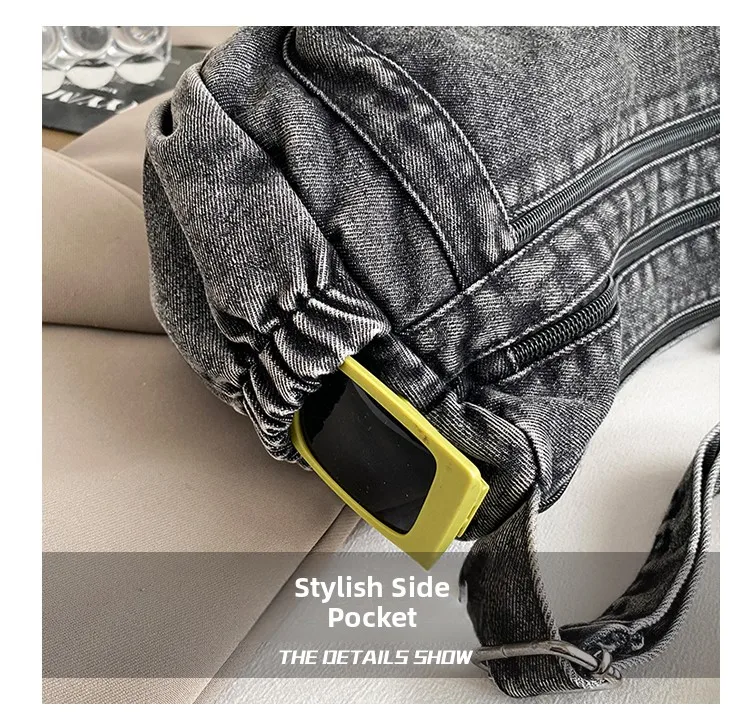 This denim shoulder bag exudes a casual yet stylish Korean vibe, perfect for everyday wear.