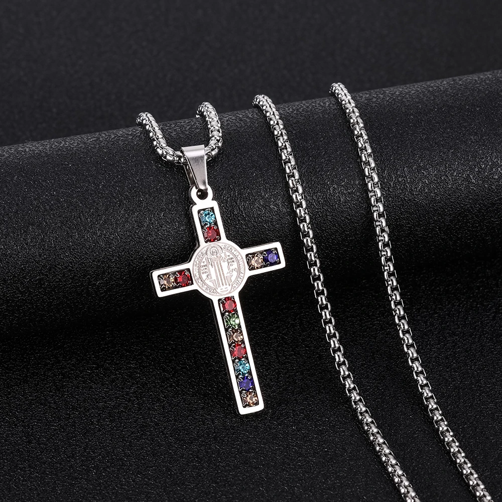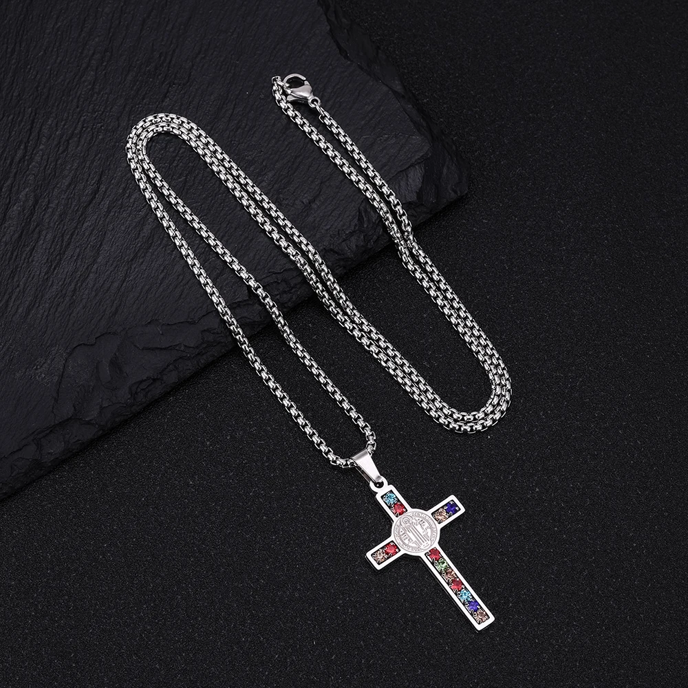 Men’s Stainless Steel Cross Necklace With Saint Benedict Pendant – Free Delivery